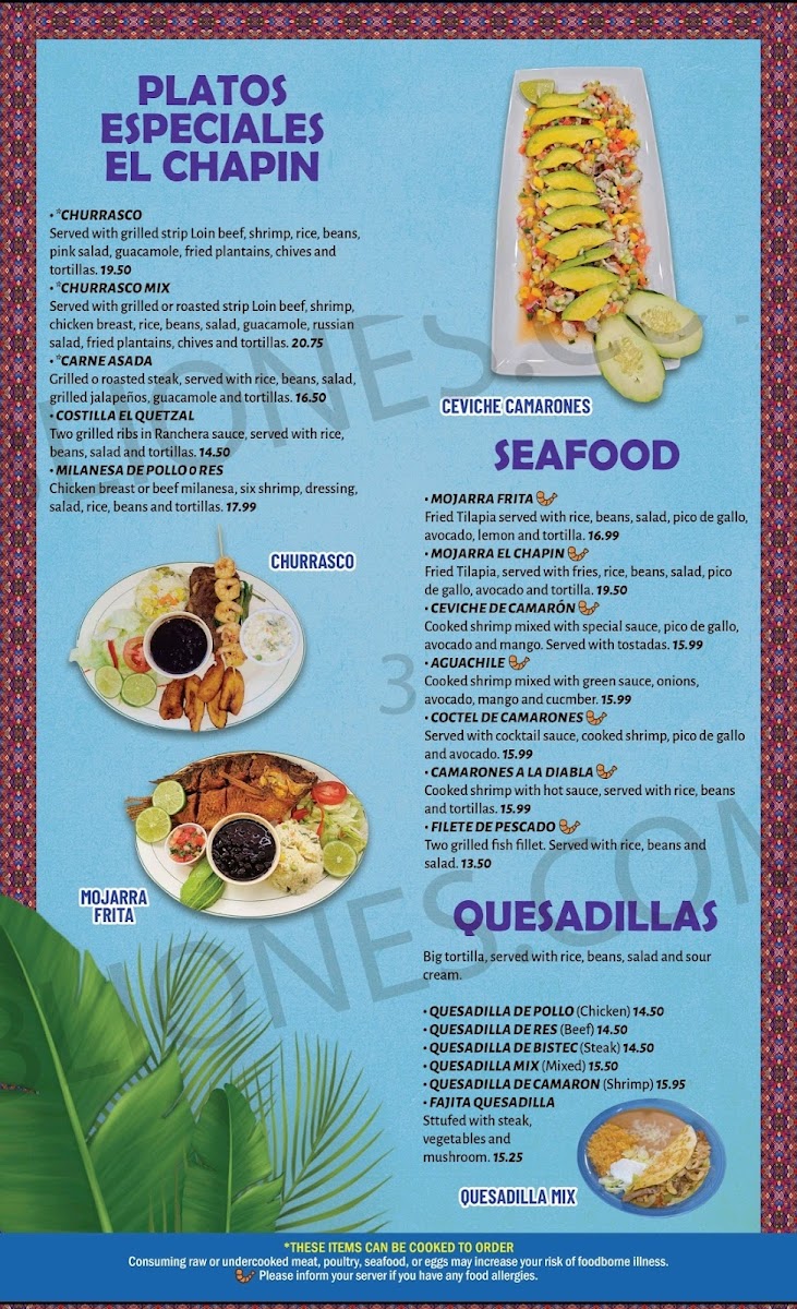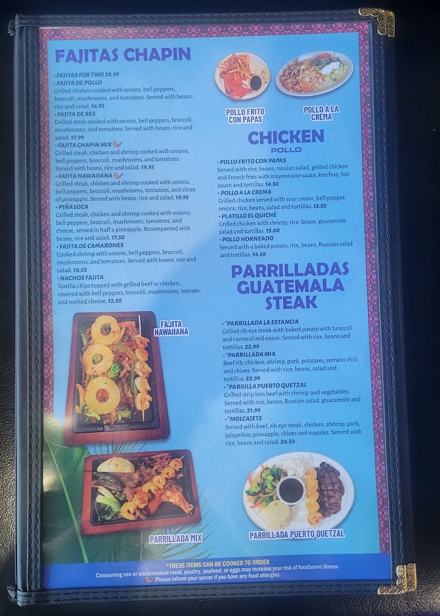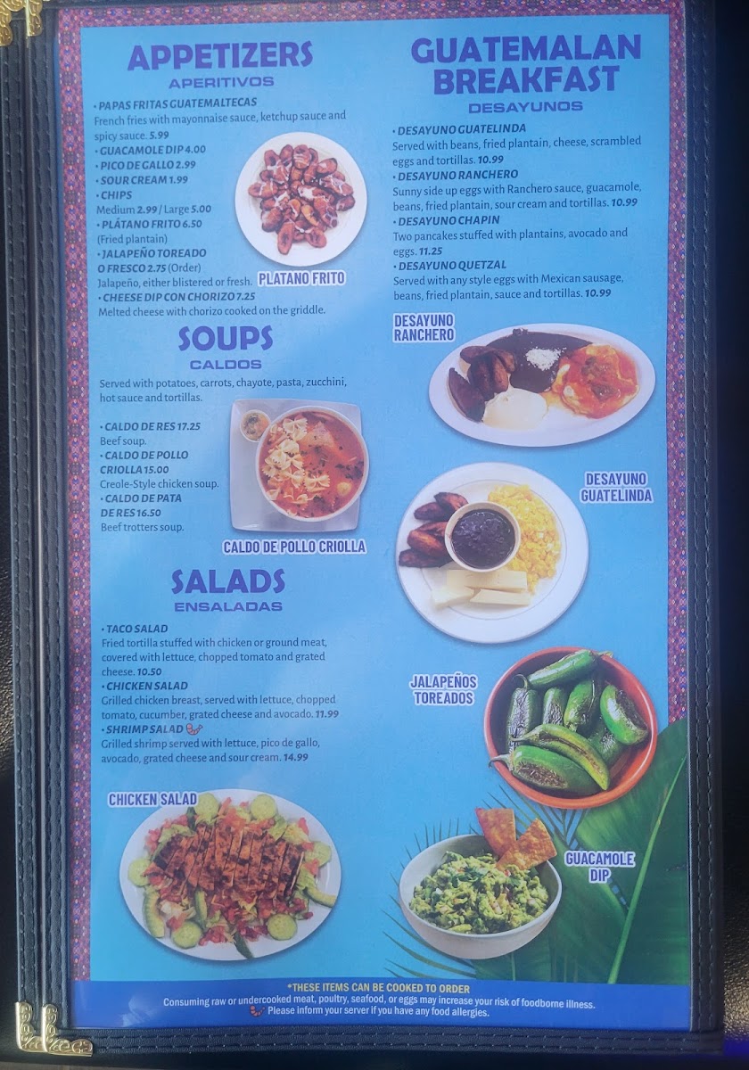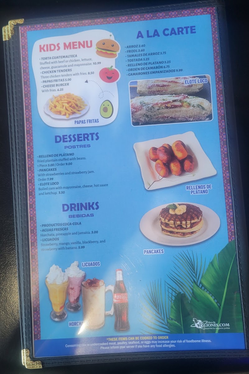 If you're craving authentic Guatemalan flavors, the Restaurante Guatemalteco Antojitos Chapin Menu is the place to be. Nestled at 515 Union Ave #133 in Dover, OH, this spot brings the vibrant taste of Guatemala to the heart of Ohio. Their menu is a delightful journey through traditional dishes, each bursting with flavor and made with love. From savory tamales to hearty stews, there’s something for everyone to enjoy. You’ll find classic favorites like chiles rellenos, enchiladas, and their signature antojitos, which are perfect for anyone looking to indulge in street food-style snacks. Whether you're a longtime fan of Guatemalan cuisine or new to these delicious flavors, this menu has plenty to explore. The mix of spices and fresh ingredients in every dish promises a memorable dining experience, one that’ll have you coming back for more.